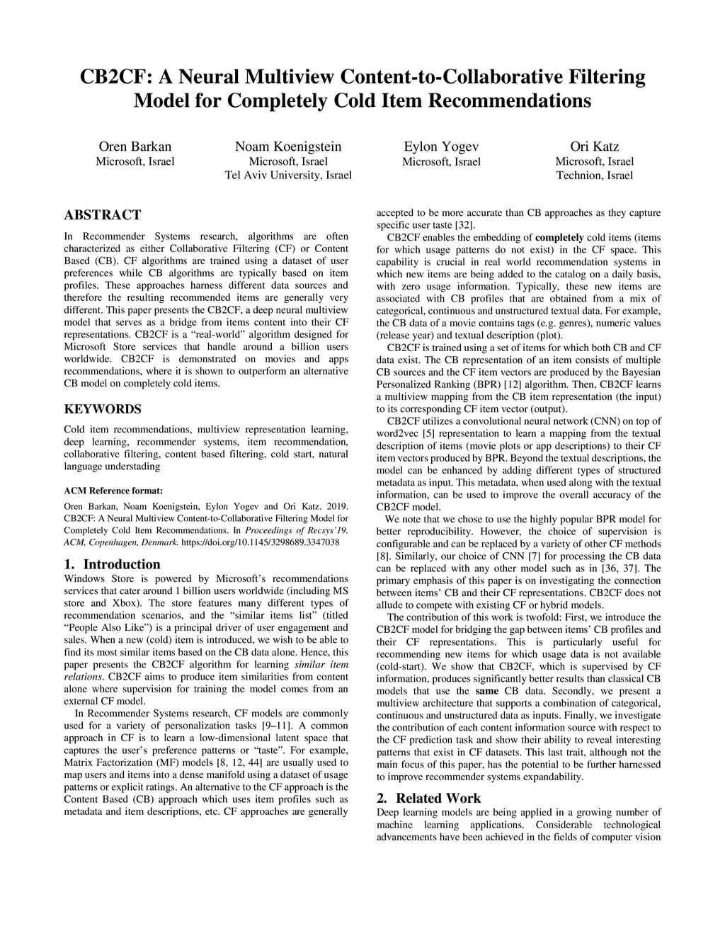 CB2CF: A Neural Multiview Content-to-Collaborative Filtering Model for