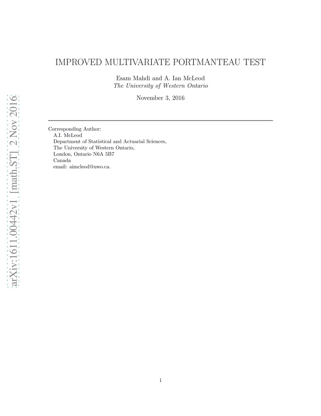 Improved multivariate portmanteau test
