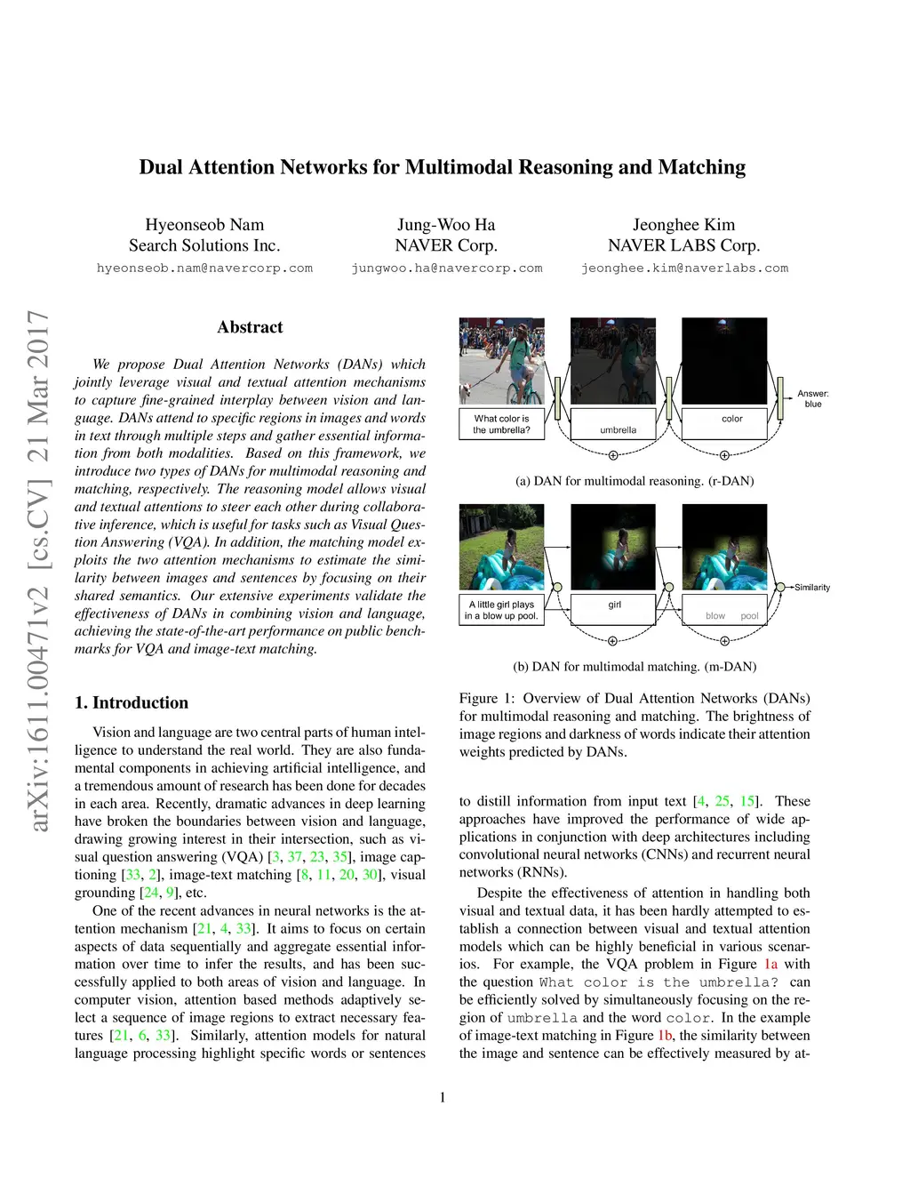 Dual Attention Networks for Multimodal Reasoning and Matching