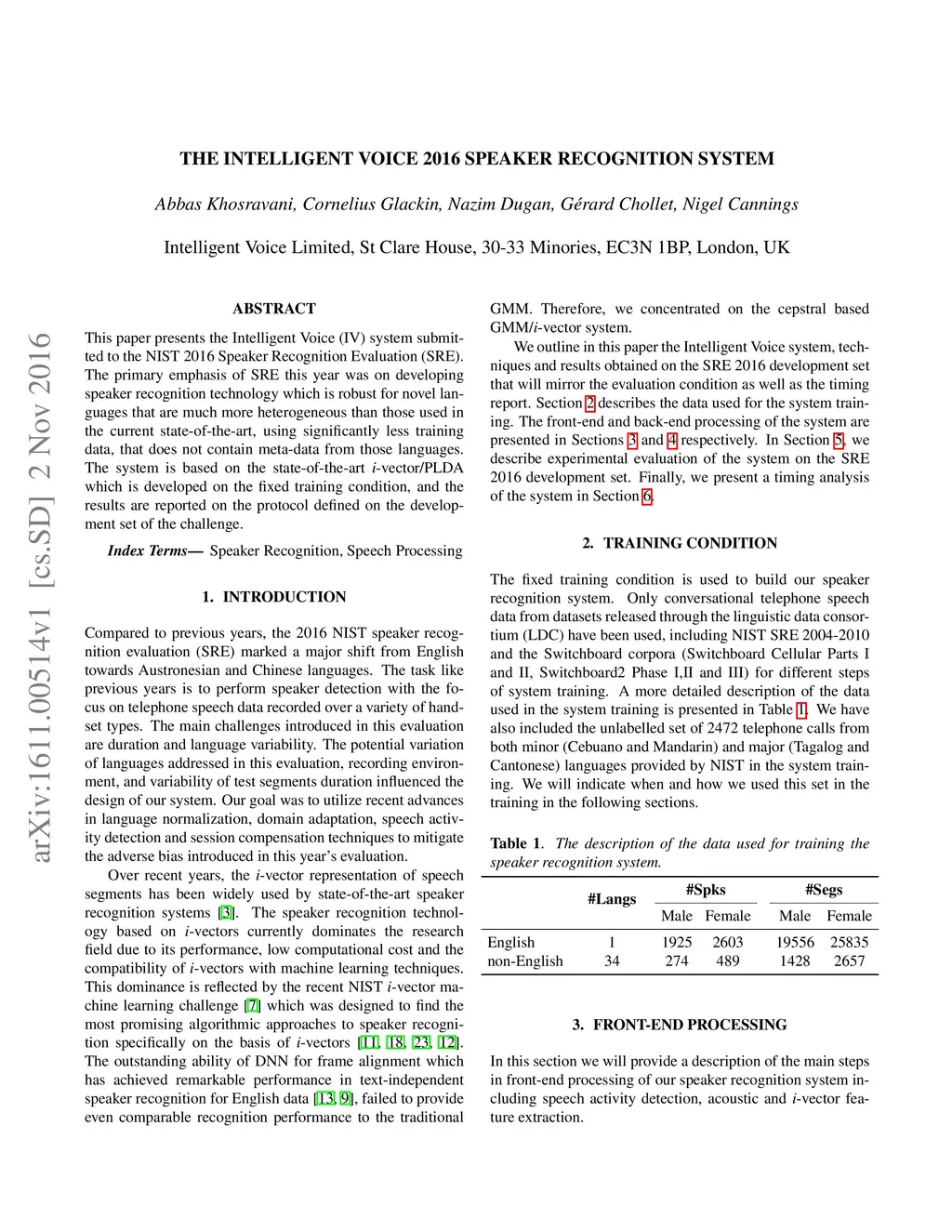 The Intelligent Voice 2016 Speaker Recognition System