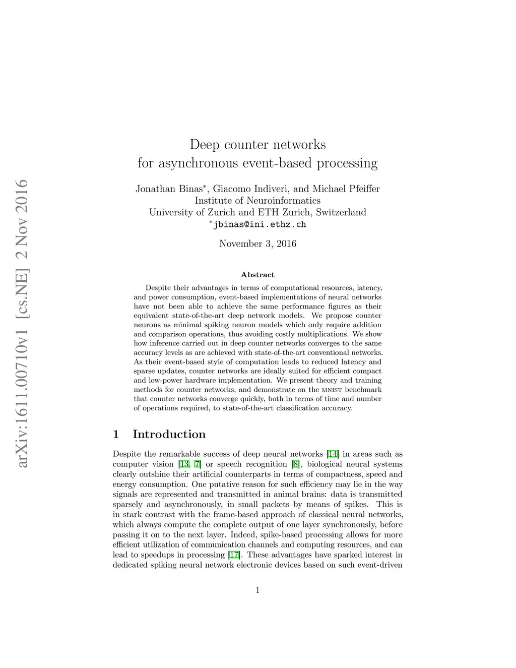 Deep counter networks for asynchronous event-based processing