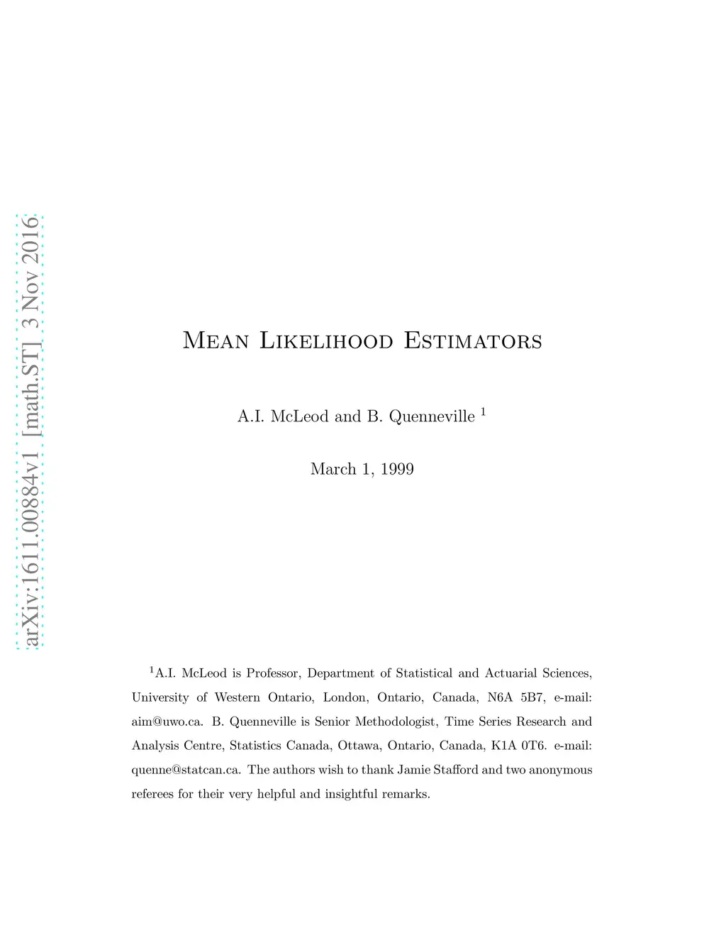 The use of {\it Mathematica} in deriving mean likelihood estimators is discussed. Comparisons between the maximum likelihood estimator, the mean likelihood estimator and the Bayes estimate based on a Jeffrey's noninformative prior using the criteria mean-square error and Pitman measure of closeness. Based on these criteria we find that for the first-order moving-average time series model, the mean likelihood estimator outperforms the maximum likelihood estimator and the Bayes estimator with a Jeffrey's noninformative prior. {\it Mathematica} was used for symbolic and numeric computations as well as for the graphical display of results. A {\it Mathematica} notebook is available which provides supplementary derivations and code from http://www.stats.uwo.ca/mcleod/epubs/mele The interested reader can easily reproduce or extend any of the results in this paper using this supplement.