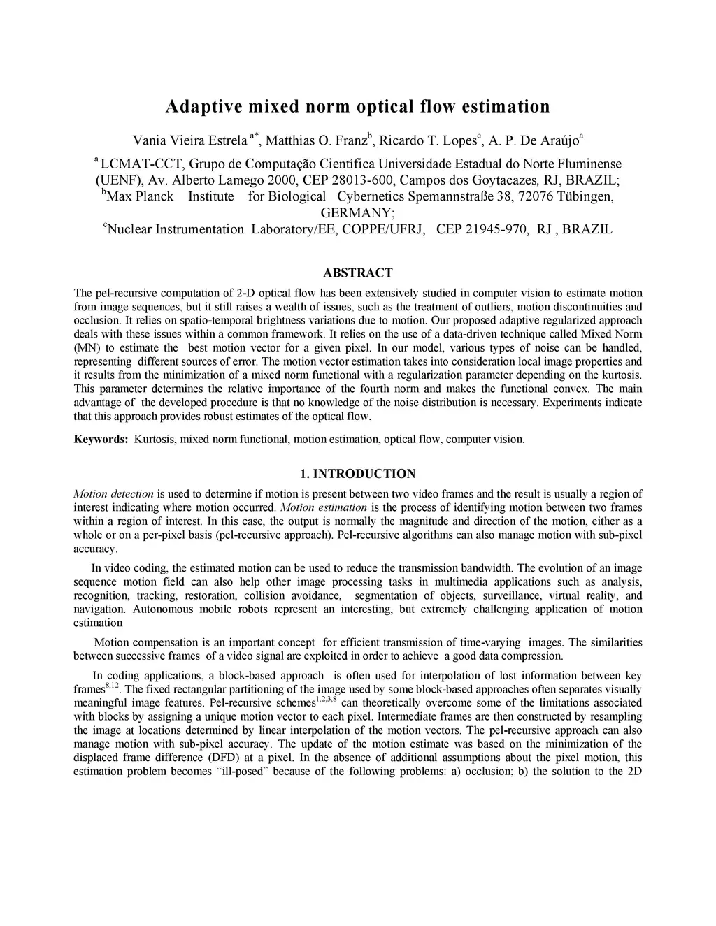 The pel-recursive computation of 2-D optical flow has been extensively studied in computer vision to estimate motion from image sequences, but it still raises a wealth of issues, such as the treatment of outliers, motion discontinuities and occlusion. It relies on spatio-temporal brightness variations due to motion. Our proposed adaptive regularized approach deals with these issues within a common framework. It relies on the use of a data-driven technique called Mixed Norm (MN) to estimate the best motion vector for a given pixel. In our model, various types of noise can be handled, representing different sources of error. The motion vector estimation takes into consideration local image properties and it results from the minimization of a mixed norm functional with a regularization parameter depending on the kurtosis. This parameter determines the relative importance of the fourth norm and makes the functional convex. The main advantage of the developed procedure is that no knowledge of the noise distribution is necessary. Experiments indicate that this approach provides robust estimates of the optical flow.