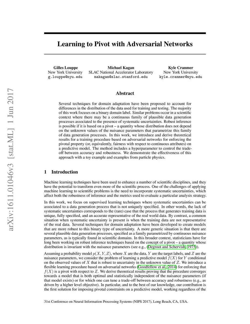 Learning to Pivot with Adversarial Networks