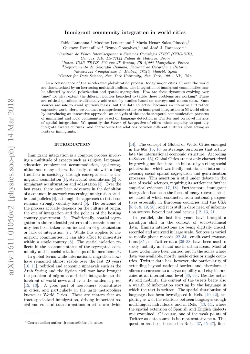 Immigrant community integration in world cities