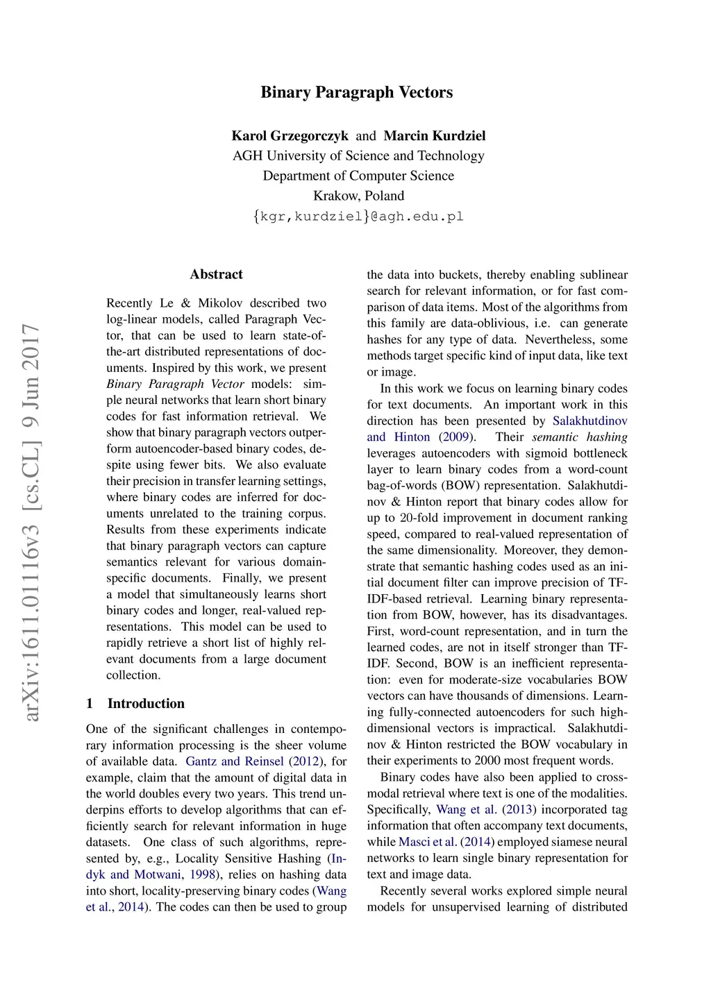 Binary Paragraph Vectors