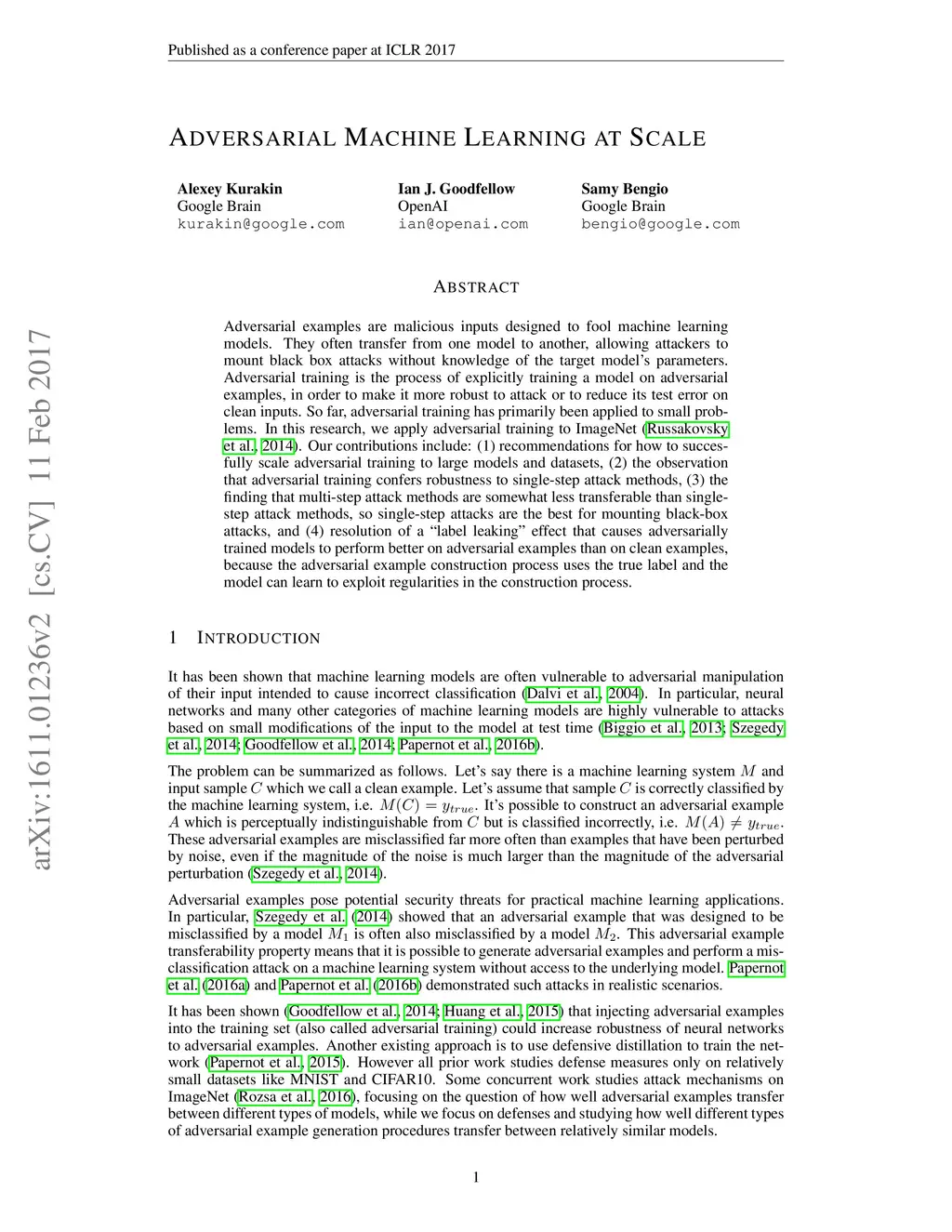 Adversarial Machine Learning at Scale
