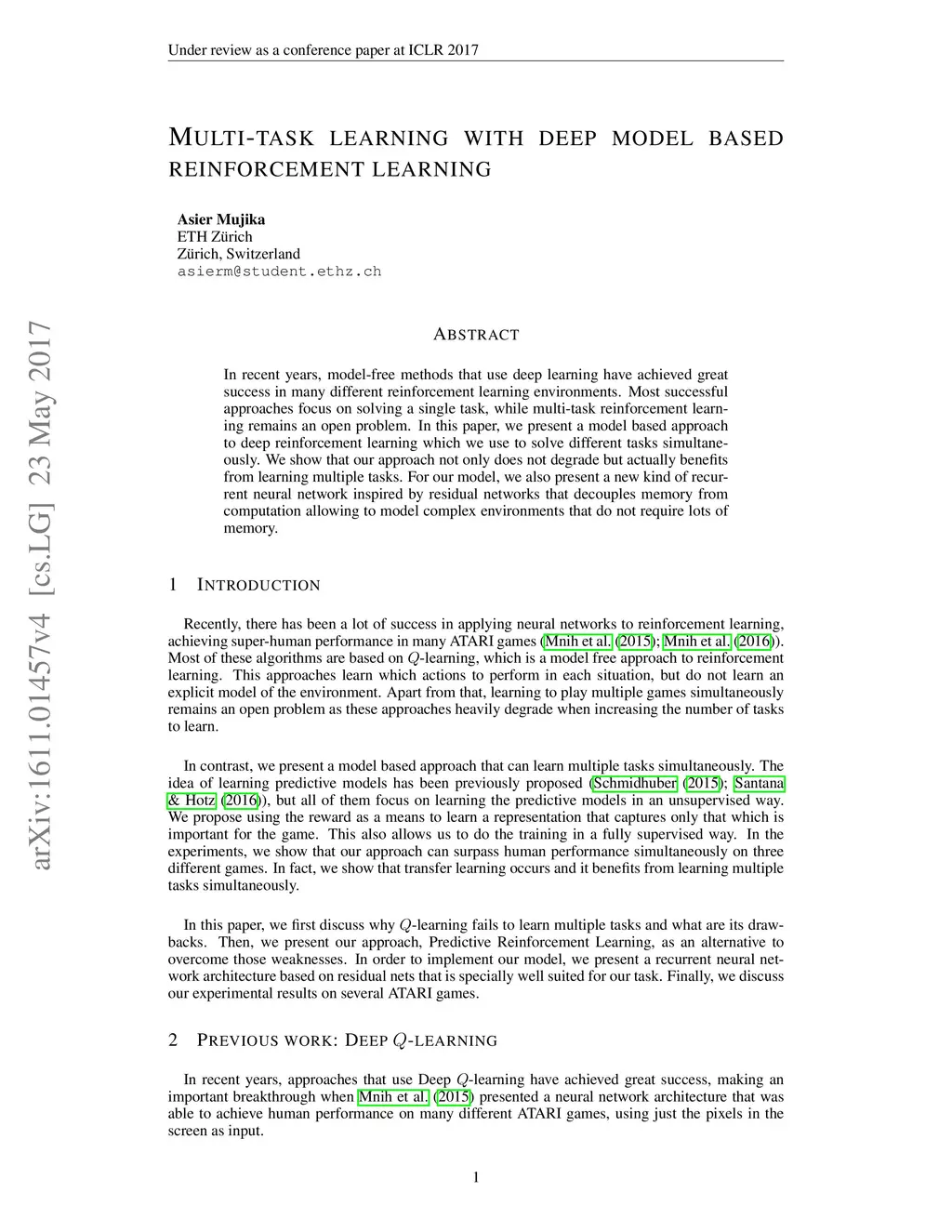 Multi-task learning with deep model based reinforcement learning