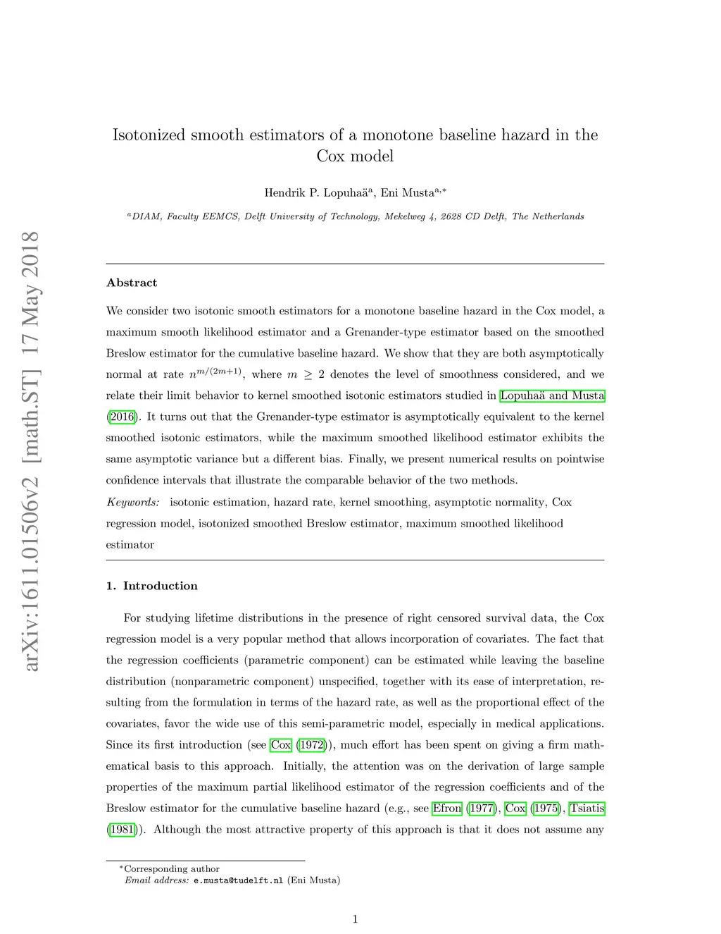 We consider two isotonic smooth estimators for a monotone baseline hazard in the Cox model, a maximum smooth likelihood estimator and a Grenander-type estimator based on the smoothed Breslow estimator for the cumulative baseline hazard. We show that they are both asymptotically normal at rate , where denotes the level of smoothness considered, and we relate their limit behavior to kernel smoothed isotonic estimators studied in Lopuha\"a and Musta (2016). It turns out that the Grenander-type estimator is asymptotically equivalent to the kernel smoothed isotonic estimators, while the maximum smoothed likelihood estimator exhibits the same asymptotic variance but a different bias. Finally, we present numerical results on pointwise confidence intervals that illustrate the comparable behavior of the two methods.