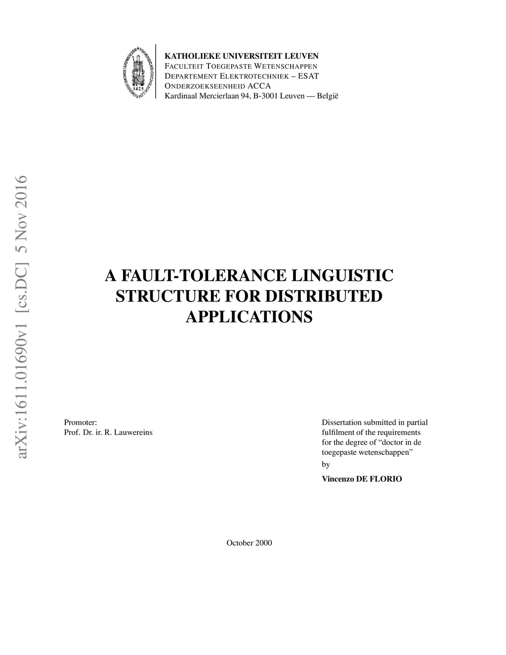 A Fault-tolerance Linguistic Structure for Distributed Applications