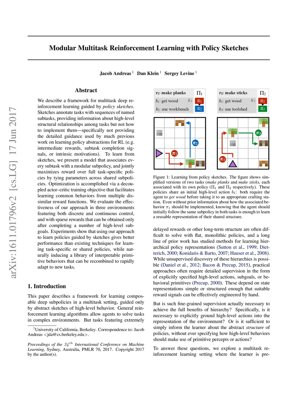 Modular Multitask Reinforcement Learning with Policy Sketches