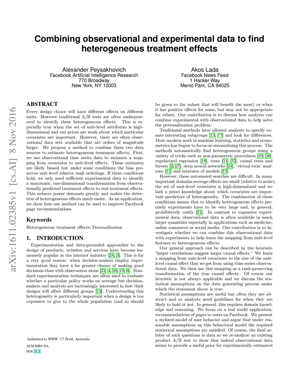 Every design choice will have different effects on different units. However traditional A/B tests are often underpowered to identify these heterogeneous effects. This is especially true when the set of unit-level attributes is high-dimensional and our priors are weak about which particular covariates are important. However, there are often observational data sets available that are orders of magnitude larger. We propose a method to combine these two data sources to estimate heterogeneous treatment effects. First, we use observational time series data to estimate a mapping from covariates to unit-level effects. These estimates are likely biased but under some conditions the bias preserves unit-level relative rank orderings. If these conditions hold, we only need sufficient experimental data to identify a monotonic, one-dimensional transformation from observationally predicted treatment effects to real treatment effects. This reduces power demands greatly and makes the detection of heterogeneous effects much easier. As an application, we show how our method can be used to improve Facebook page recommendations.