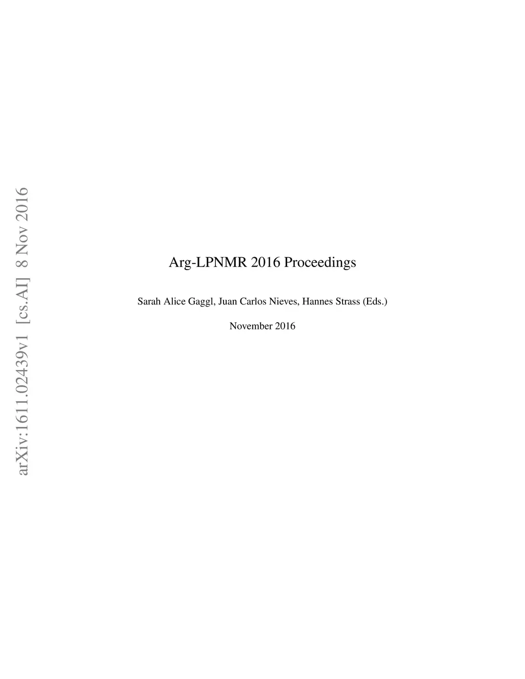 Logic Programming and Non-Monotonic Reasoning (Arg-LPNMR 2016)