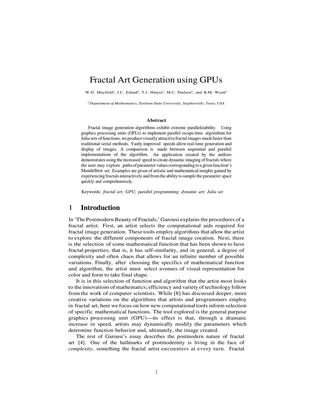 Fractal image generation algorithms exhibit extreme parallelizability. Using general purpose graphics processing unit (GPU) programming to implement escape-time algorithms for Julia sets of functions,parallel methods generate visually attractive fractal images much faster than traditional methods. Vastly improved speeds are achieved using this method of computation, which allow real-time generation and display of images. A comparison is made between sequential and parallel implementations of the algorithm. An application created by the authors demonstrates using the increased speed to create dynamic imaging of fractals where the user may explore paths of parameter values corresponding to a given function's Mandelbrot set. Examples are given of artistic and mathematical insights gained by experiencing fractals interactively and from the ability to sample the parameter space quickly and comprehensively.