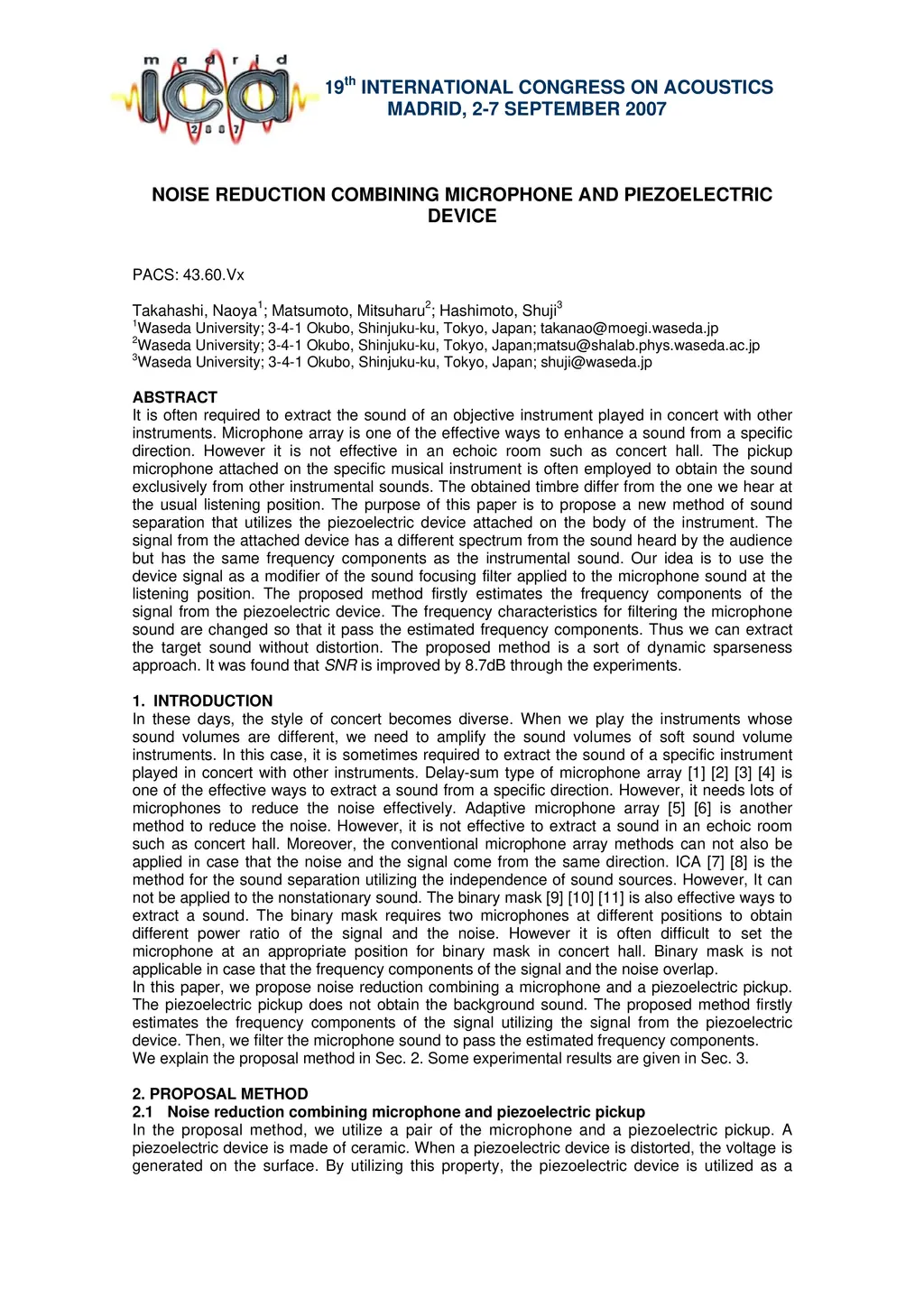 It is often required to extract the sound of an objective instrument played in concert with other instruments. Microphone array is one of the effective ways to enhance a sound from a specific direction. However it is not effective in an echoic room such as concert hall. The pickup microphone attached on the specific musical instrument is often employed to obtain the sound exclusively from other instrumental sounds. The obtained timbre differ from the one we hear at the usual listening position. The purpose of this paper is to propose a new method of sound separation that utilizes the piezoelectric device attached on the body of the instrument. The signal from the attached device has a different spectrum from the sound heard by the audience but has the same frequency components as the instrumental sound. Our idea is to use the device signal as a modifier of the sound focusing filter applied to the microphone sound at the listening position. The proposed method firstly estimates the frequency components of the signal from the piezoelectric device. The frequency characteristics for filtering the microphone sound are changed so that it pass the estimated frequency components. Thus we can extractthe target sound without distortion. The proposed method is a sort of dynamic sparseness approach. It was found that SNR is improved by 8.7dB through the experiments.