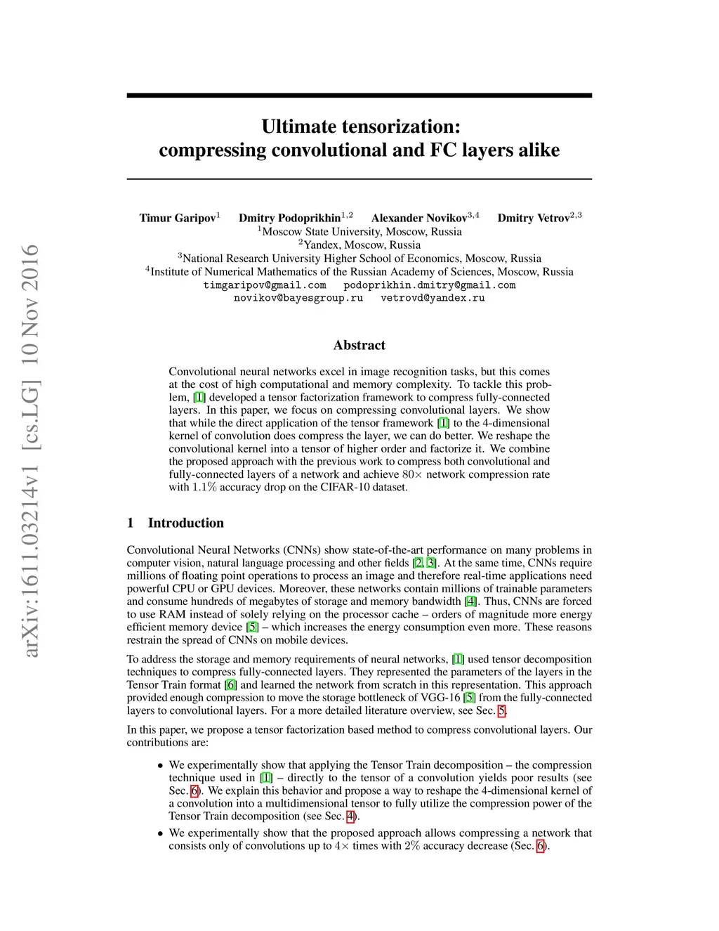Ultimate tensorization: compressing convolutional and FC layers alike
