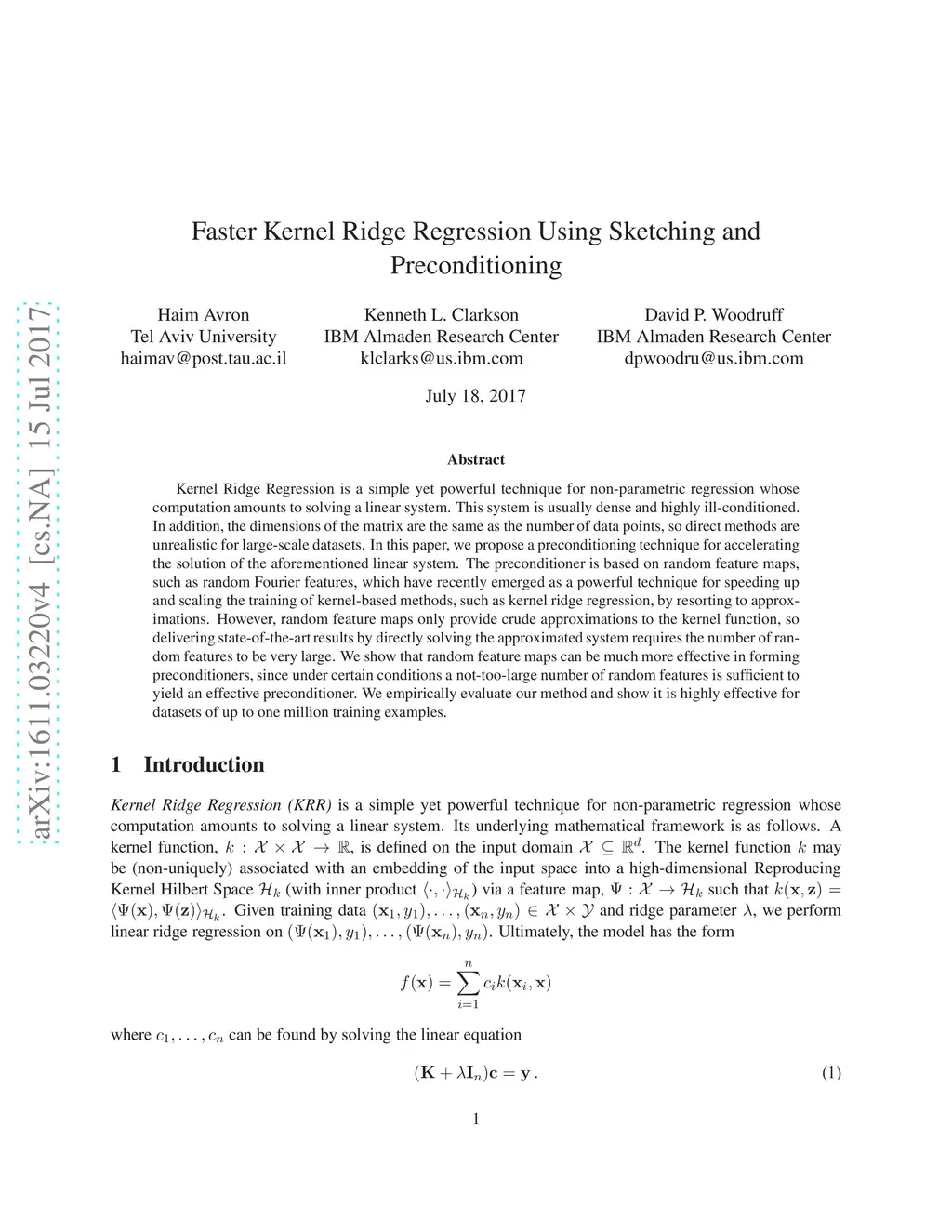 Faster Kernel Ridge Regression Using Sketching and Preconditioning