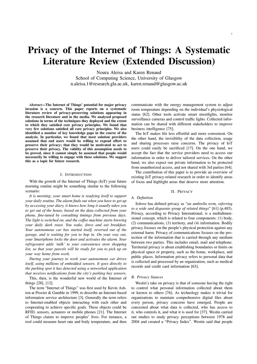 Privacy of the Internet of Things: A Systematic Literature Review