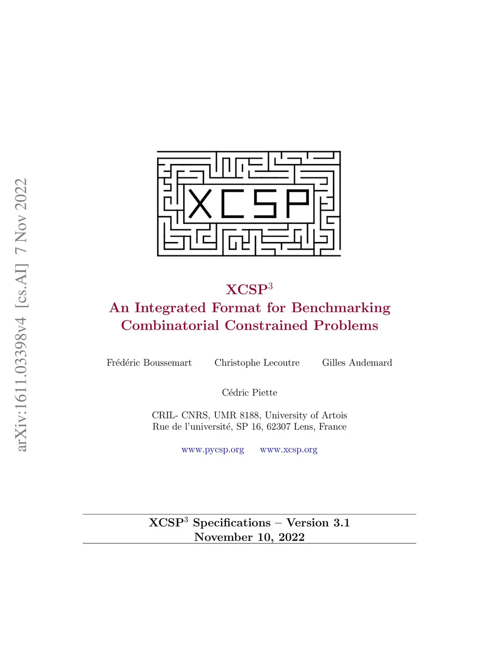 XCSP3: An Integrated Format for Benchmarking Combinatorial Constrained