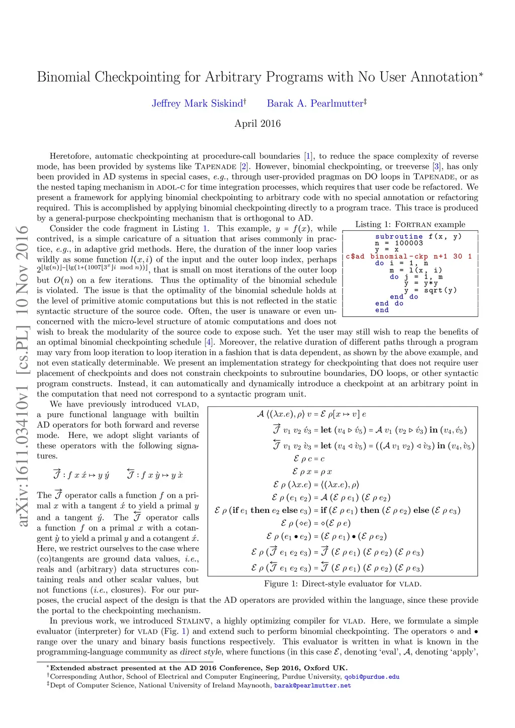 Binomial Checkpointing for Arbitrary Programs with No User Annotation