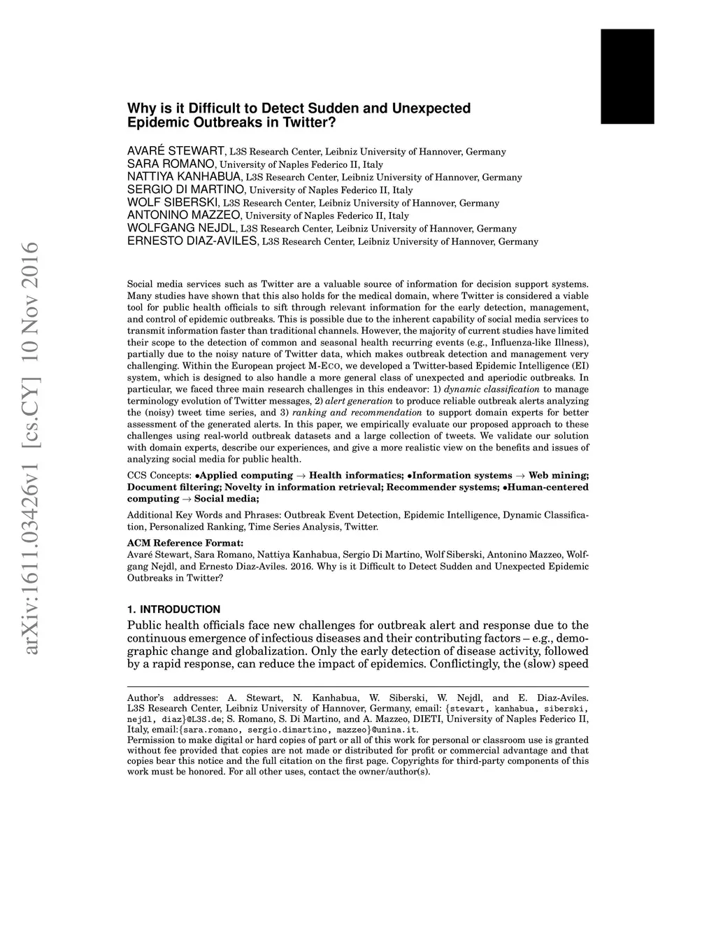 Social media services such as Twitter are a valuable source of information for decision support systems. Many studies have shown that this also holds for the medical domain, where Twitter is considered a viable tool for public health officials to sift through relevant information for the early detection, management, and control of epidemic outbreaks. This is possible due to the inherent capability of social media services to transmit information faster than traditional channels. However, the majority of current studies have limited their scope to the detection of common and seasonal health recurring events (e.g., Influenza-like Illness), partially due to the noisy nature of Twitter data, which makes outbreak detection and management very challenging. Within the European project M-Eco, we developed a Twitter-based Epidemic Intelligence (EI) system, which is designed to also handle a more general class of unexpected and aperiodic outbreaks. In particular, we faced three main research challenges in this endeavor: 1) dynamic classification to manage terminology evolution of Twitter messages, 2) alert generation to produce reliable outbreak alerts analyzing the (noisy) tweet time series, and 3) ranking and recommendation to support domain experts for better assessment of the generated alerts. In this paper, we empirically evaluate our proposed approach to these challenges using real-world outbreak datasets and a large collection of tweets. We validate our solution with domain experts, describe our experiences, and give a more realistic view on the benefits and issues of analyzing social media for public health.