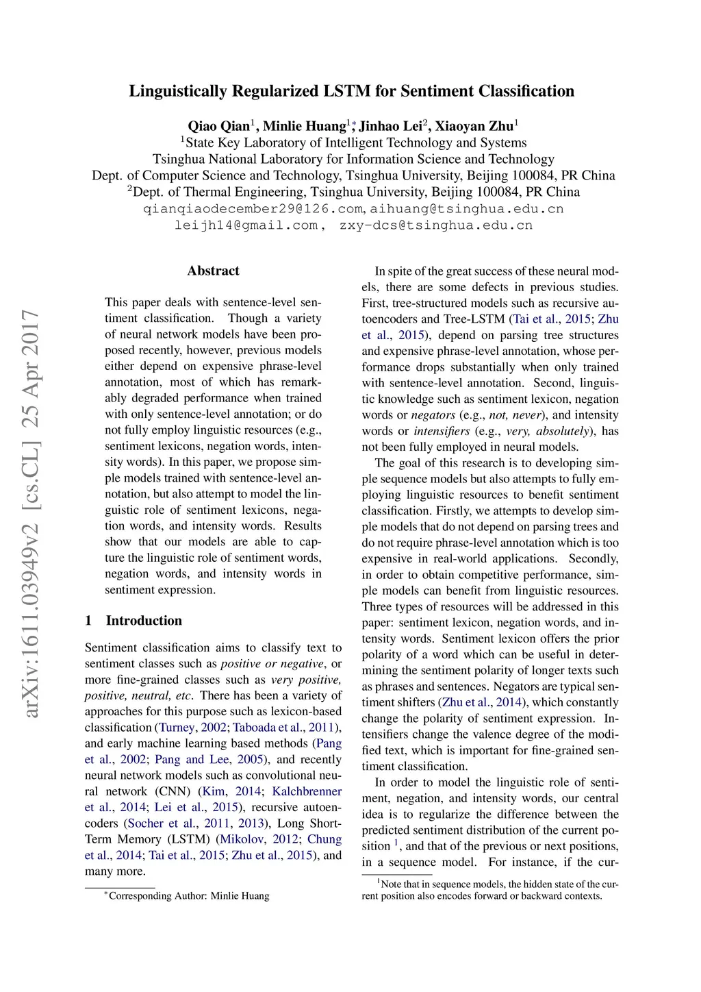 Linguistically Regularized LSTMs for Sentiment Classification