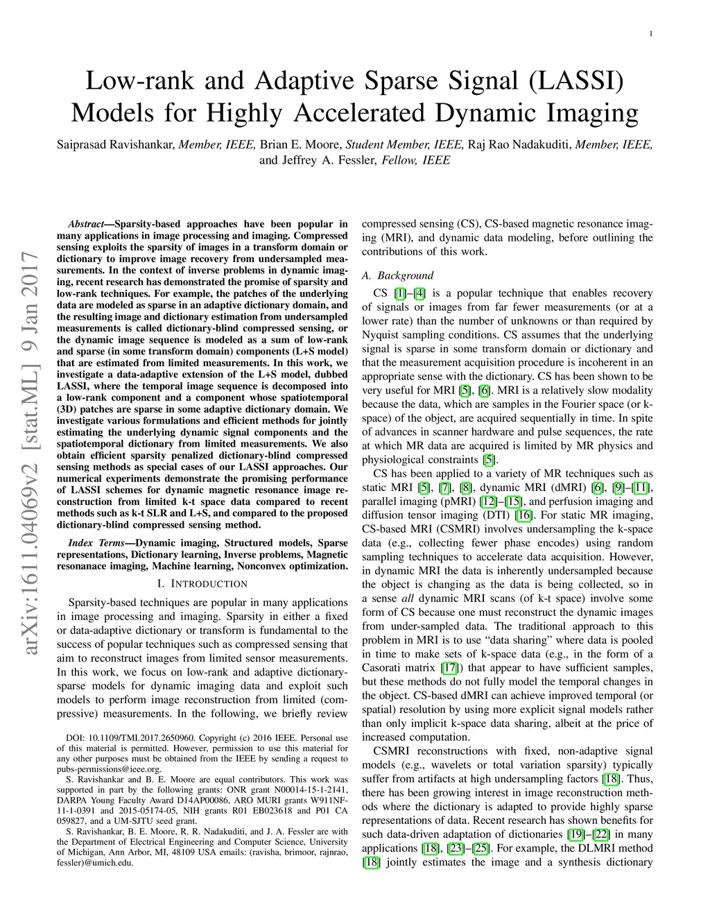 Low-rank and Adaptive Sparse Signal (LASSI) Models for Highly