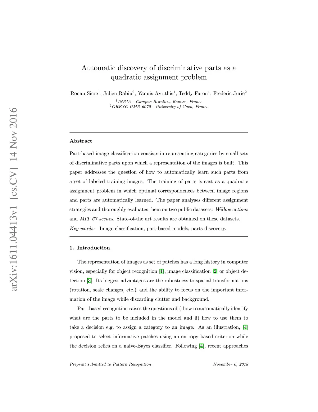 Part-based image classification consists in representing categories by small sets of discriminative parts upon which a representation of the images is built. This paper addresses the question of how to automatically learn such parts from a set of labeled training images. The training of parts is cast as a quadratic assignment problem in which optimal correspondences between image regions and parts are automatically learned. The paper analyses different assignment strategies and thoroughly evaluates them on two public datasets: Willow actions and MIT 67 scenes. State-of-the art results are obtained on these datasets.
