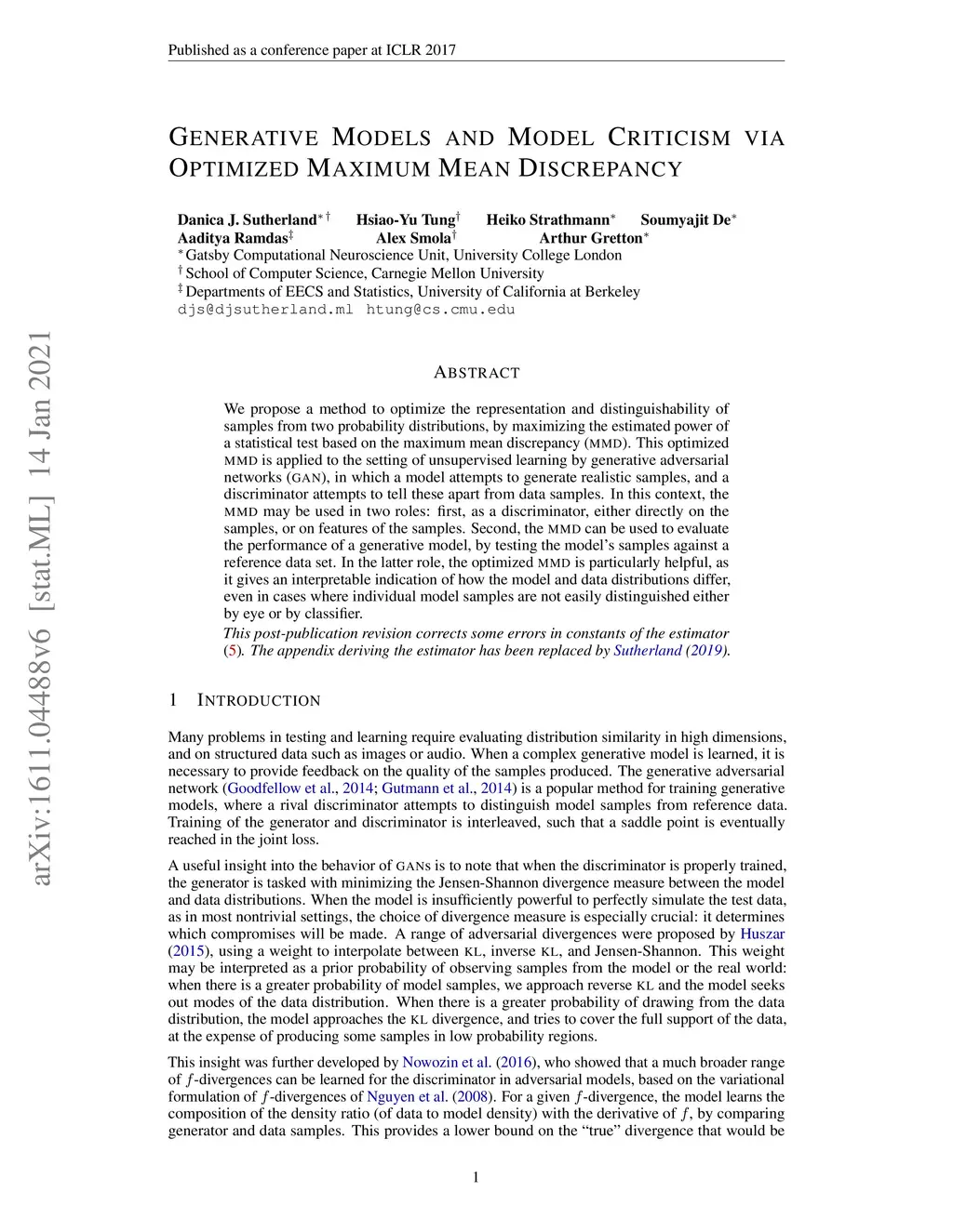 Generative Models and Model Criticism via Optimized Maximum Mean