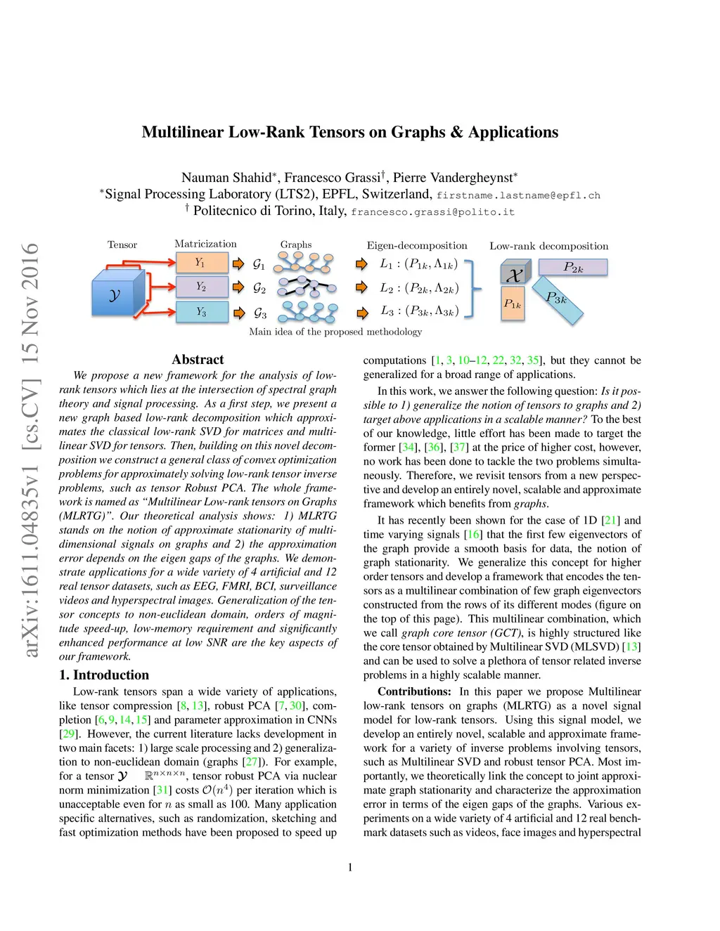 Multilinear Low-Rank Tensors on Graphs & Applications