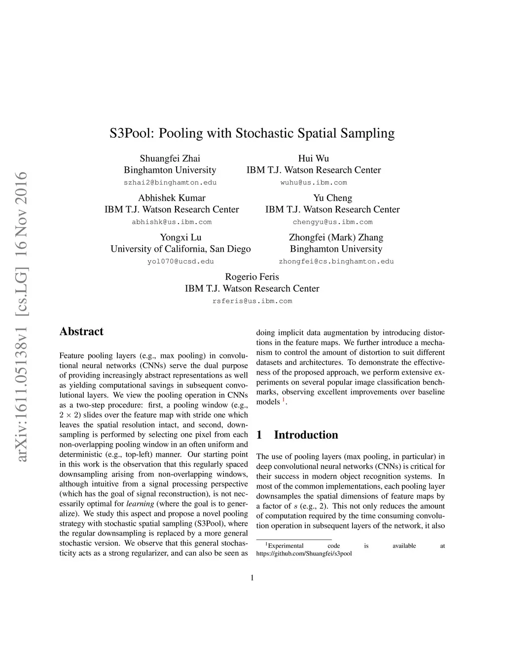 S3Pool: Pooling with Stochastic Spatial Sampling