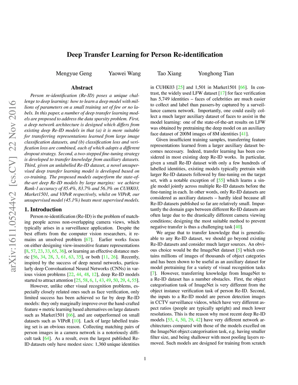 Deep Transfer Learning for Person Re-identification