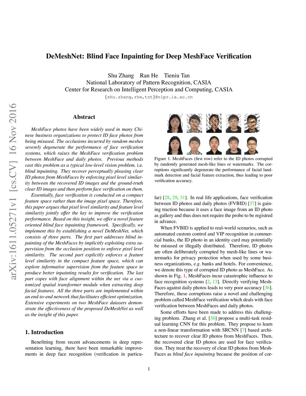 DeMeshNet: Blind Face Inpainting for Deep MeshFace Verification