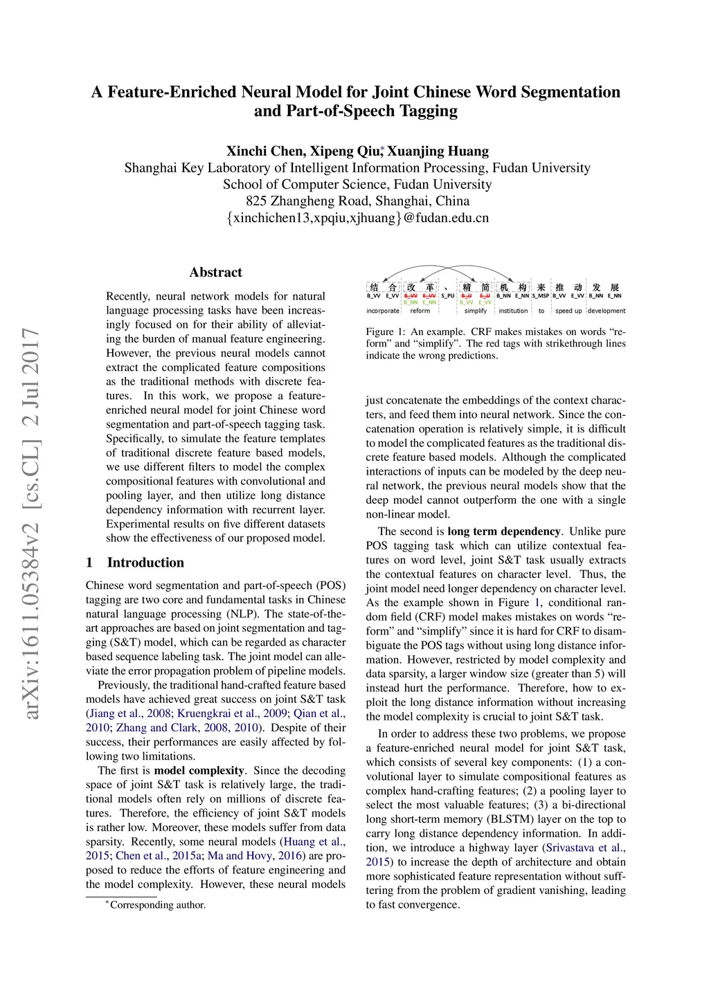 A Feature-Enriched Neural Model for Joint Chinese Word Segmentation and