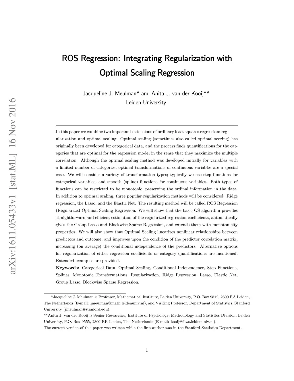 ROS Regression: Integrating Regularization and Optimal Scaling