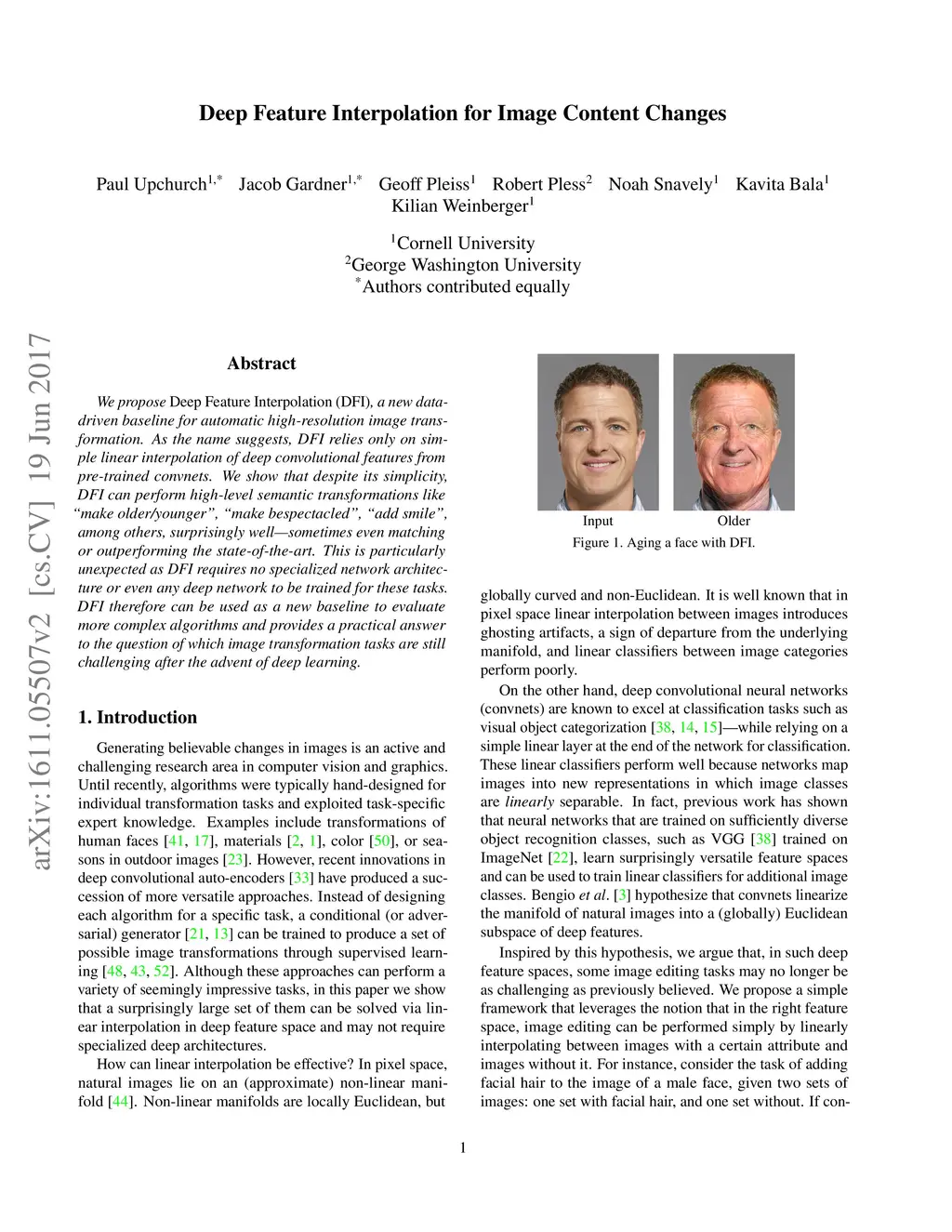 We propose Deep Feature Interpolation (DFI), a new data-driven baseline for automatic high-resolution image transformation. As the name suggests, it relies only on simple linear interpolation of deep convolutional features from pre-trained convnets. We show that despite its simplicity, DFI can perform high-level semantic transformations like "make older/younger", "make bespectacled", "add smile", among others, surprisingly well - sometimes even matching or outperforming the state-of-the-art. This is particularly unexpected as DFI requires no specialized network architecture or even any deep network to be trained for these tasks. DFI therefore can be used as a new baseline to evaluate more complex algorithms and provides a practical answer to the question of which image transformation tasks are still challenging in the rise of deep learning.