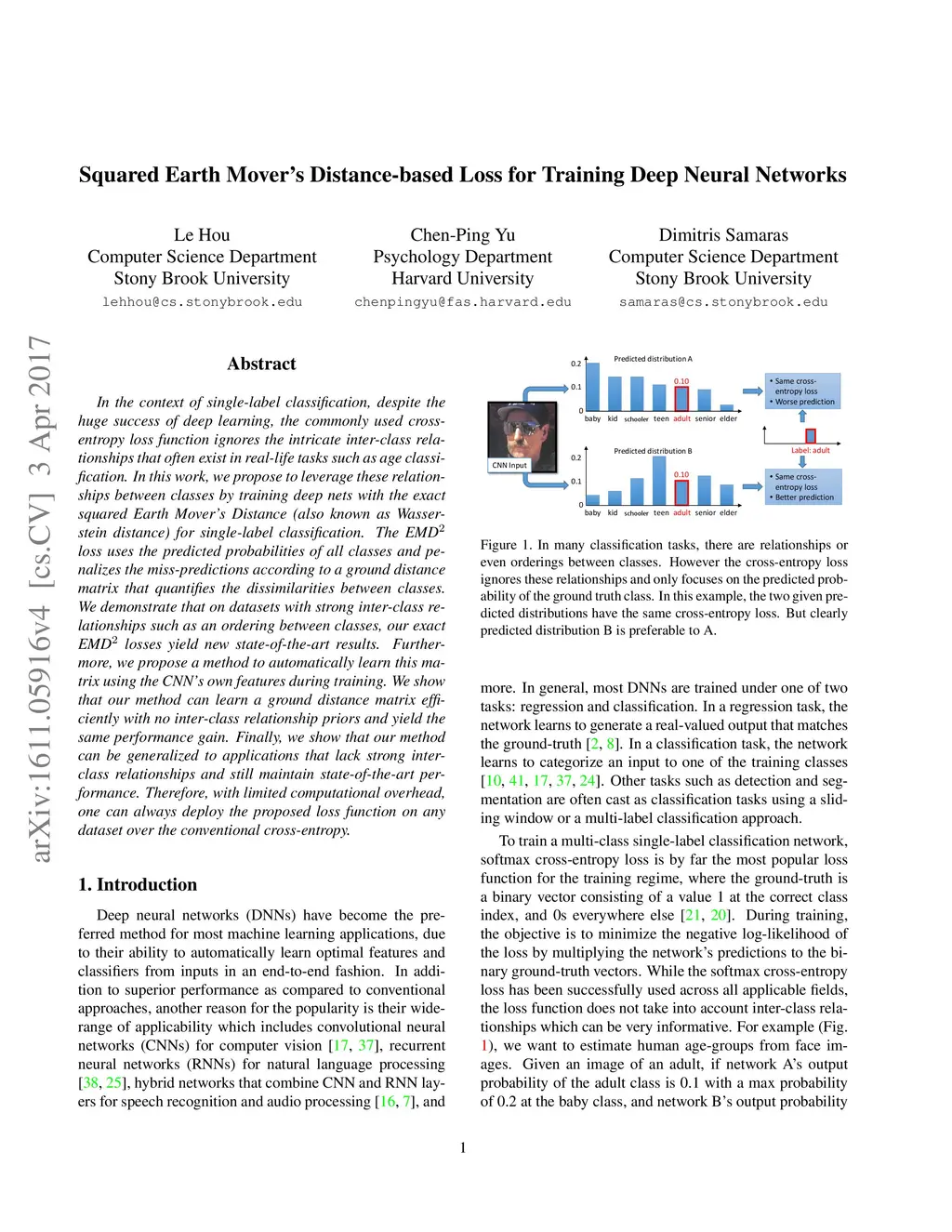 Squared Earth Mover's Distance-based Loss for Training Deep Neural