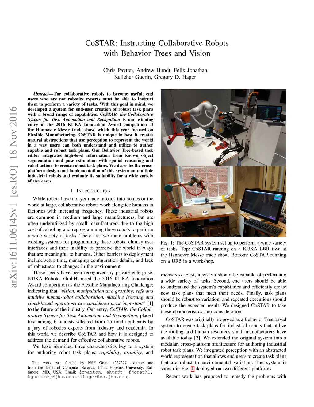 CoSTAR: Instructing Collaborative Robots with Behavior Trees and Vision