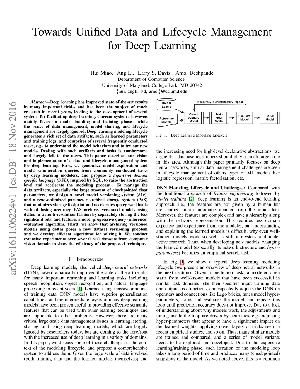 ModelHub: Towards Unified Data and Lifecycle Management for Deep