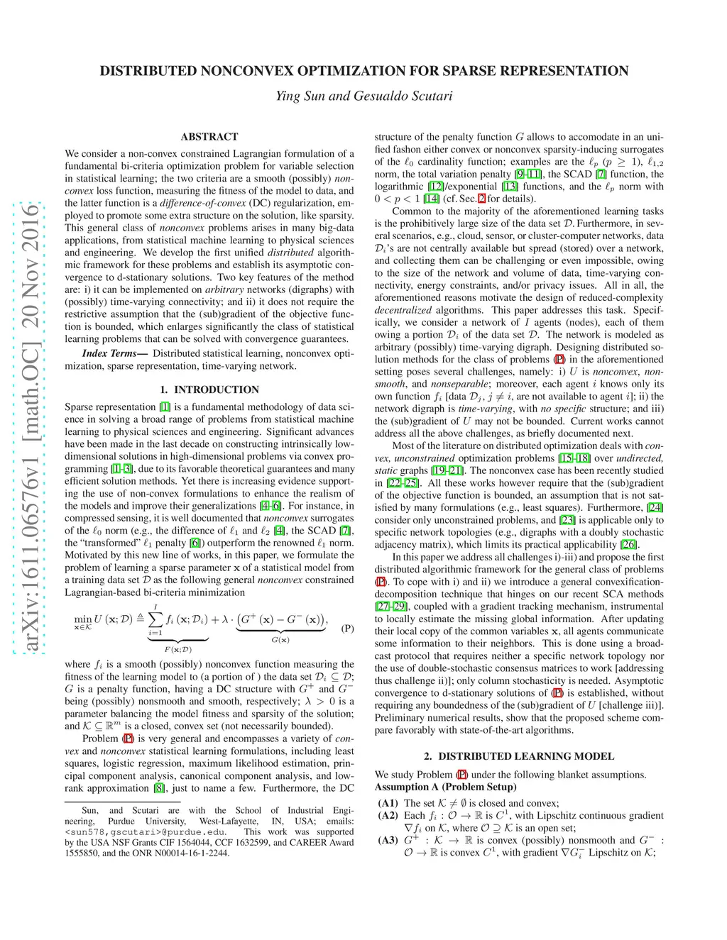 Distributed Nonconvex Optimization for Sparse Representation