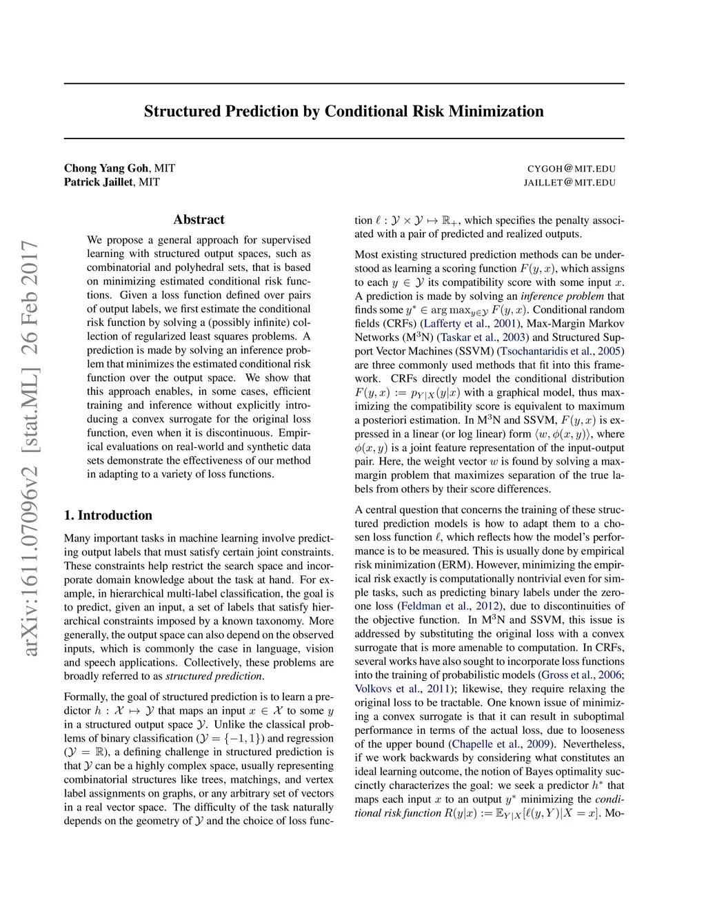 We propose a general approach for supervised learning with structured output spaces, such as combinatorial and polyhedral sets, that is based on minimizing estimated conditional risk functions. Given a loss function defined over pairs of output labels, we first estimate the conditional risk function by solving a (possibly infinite) collection of regularized least squares problems. A prediction is made by solving an inference problem that minimizes the estimated conditional risk function over the output space. We show that this approach enables, in some cases, efficient training and inference without explicitly introducing a convex surrogate for the original loss function, even when it is discontinuous. Empirical evaluations on real-world and synthetic data sets demonstrate the effectiveness of our method in adapting to a variety of loss functions.