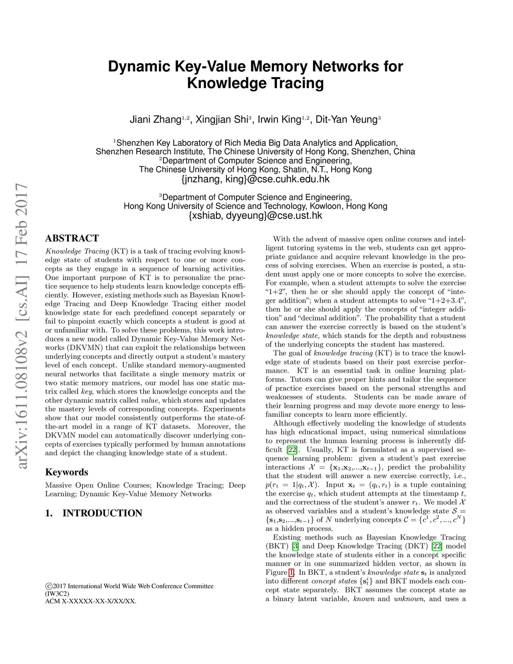 Dynamic Key-Value Memory Networks for Knowledge Tracing