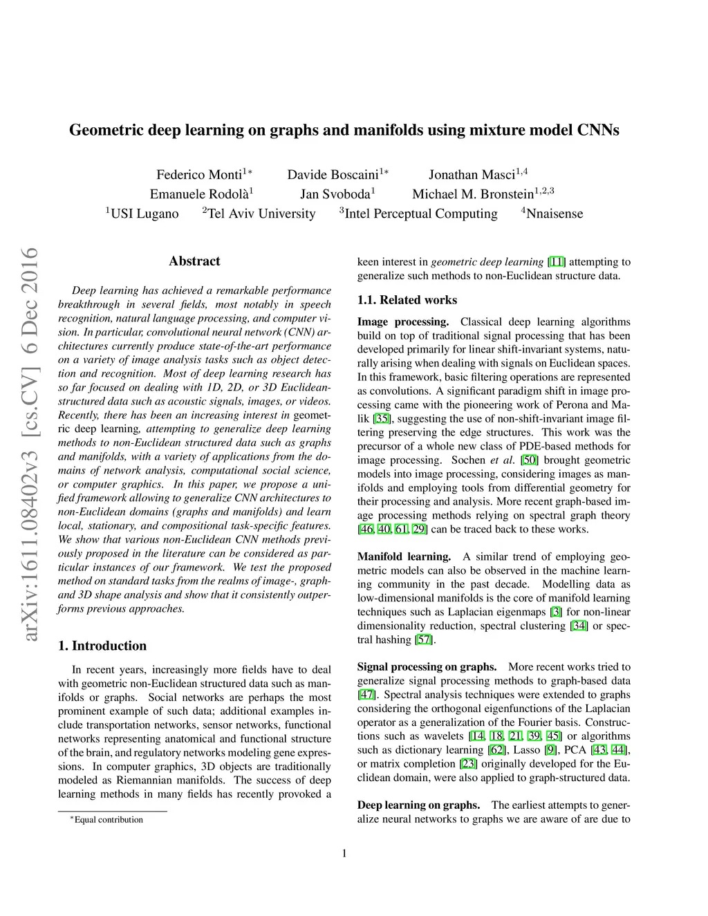 Geometric deep learning on graphs and manifolds using mixture model CNNs