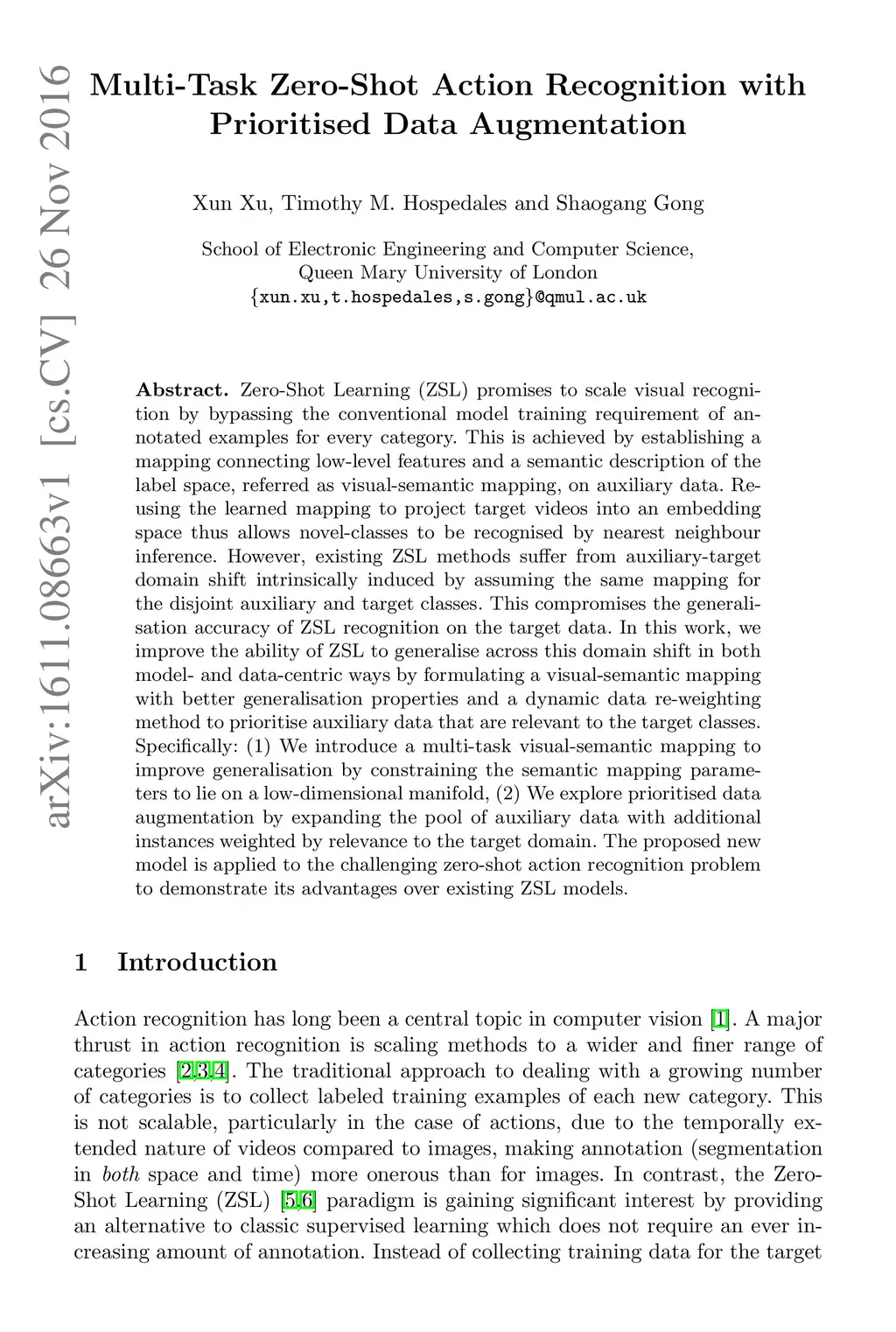 Multi-Task Zero-Shot Action Recognition with Prioritised Data