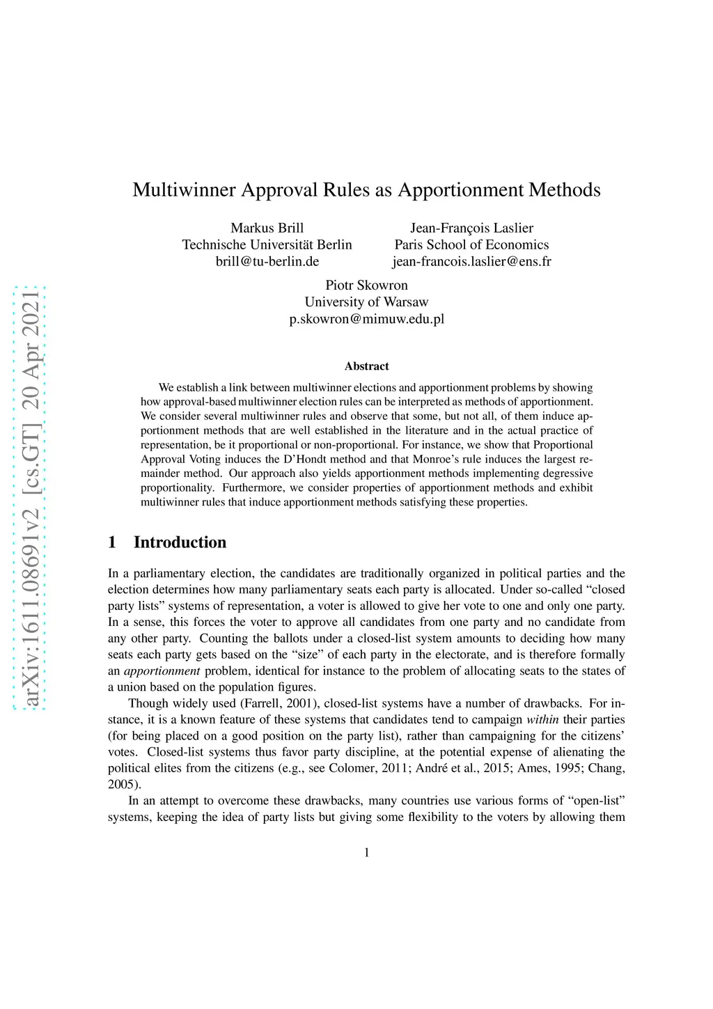 We establish a link between multiwinner elections and apportionment problems by showing how approval-based multiwinner election rules can be interpreted as methods of apportionment. We consider several multiwinner rules and observe that they induce apportionment methods that are well-established in the literature on proportional representation. For instance, we show that Proportional Approval Voting induces the D'Hondt method and that Monroe's rule induces the largest reminder method. We also consider properties of apportionment methods and exhibit multiwinner rules that induce apportionment methods satisfying these properties.