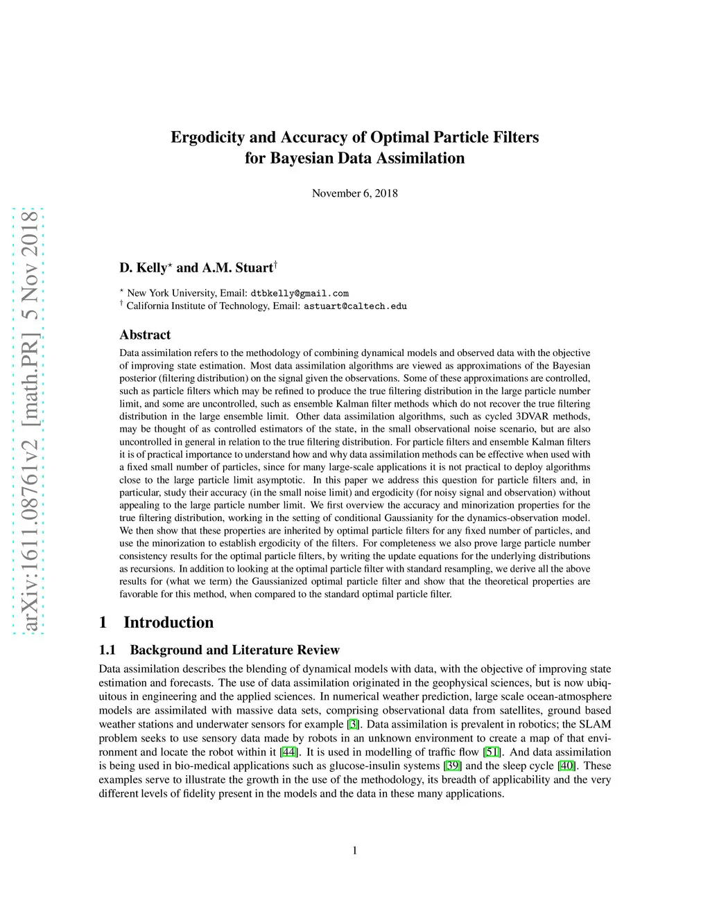 Ergodicity and Accuracy of Optimal Particle Filters for Bayesian Data