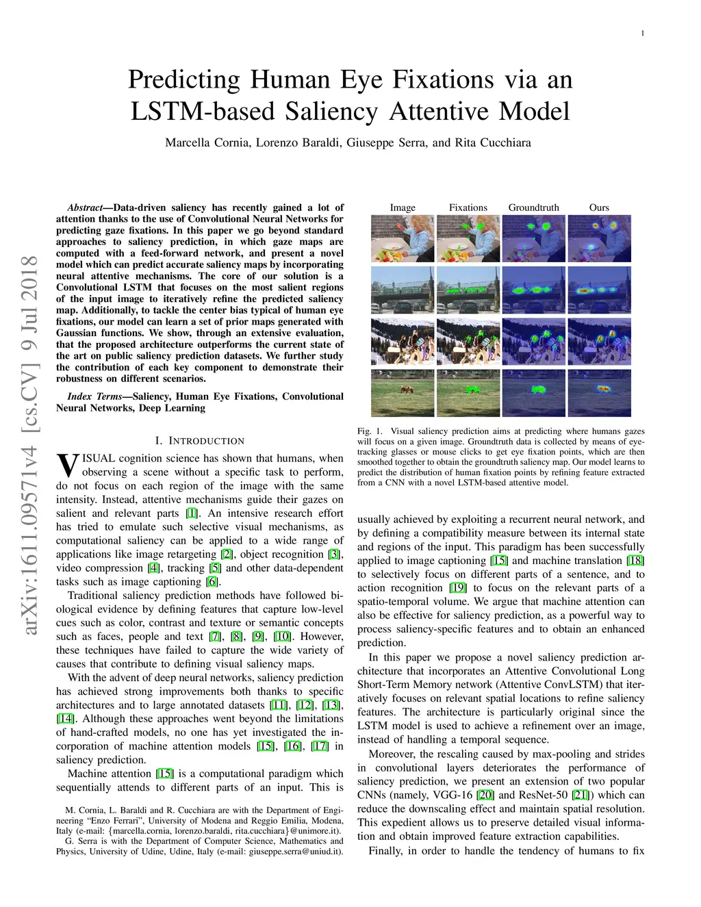 Predicting Human Eye Fixations via an LSTM-based Saliency Attentive