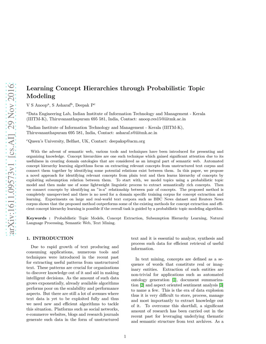 Learning Concept Hierarchies through Probabilistic Topic Modeling