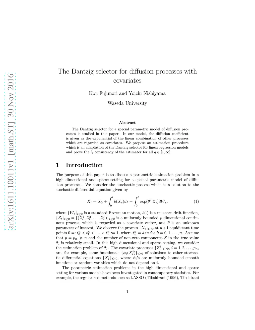 The Dantzig selector for a special parametric model of diffusion processes is studied in this paper. In our model, the diffusion coefficient is given as the exponential of the linear combination of other processes which are regarded as covariates. We propose an estimation procedure which is an adaptation of the Dantzig selector for linear regression models and prove the consistency of the estimator for all .