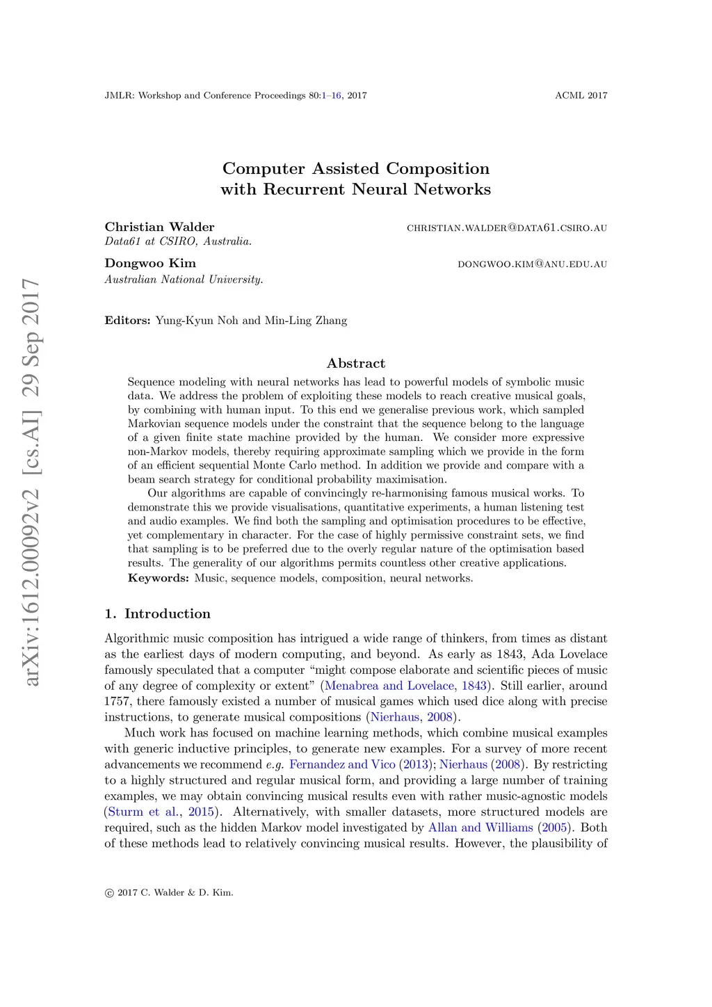 Computer Assisted Composition with Recurrent Neural Networks